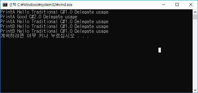 C# 전문가가 아니다보니 그동안 전통적 방식의 델리게이트만 썼는데, 2.0부터 간소화되었군..
