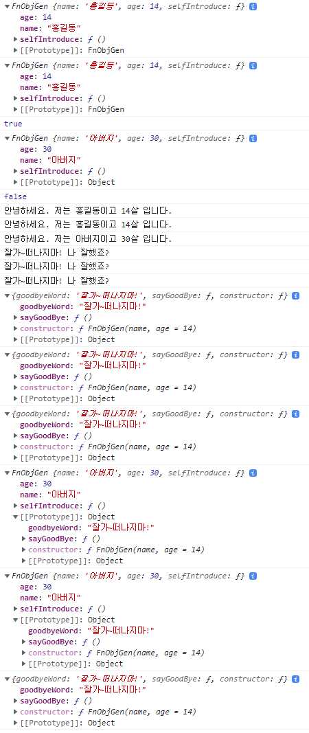 ※ m1.sayGoodBye(); 부분을 prototype추가 전으로 올려보니 오류가 난다. hoisting이 안되나 보다.